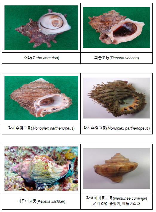 나팔고둥과 형태가 유사한 주요 고둥류(非법정보호종)