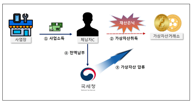 ⇨ 가상자산 거래소로부터 체납자가 보유한 가상자산 내역(종류·시세)을 확인하고 즉시 강제징수하여 체납액 전액 징수