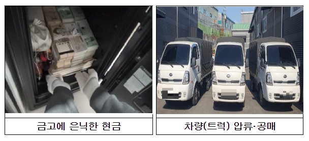 ○ 실거주지 수색하여 개인 금고에 은닉한 현금 1억원과 前 배우자 사업장에 은닉한 체납자 명의 화물차 10대 공매하여 총 2억원 징수