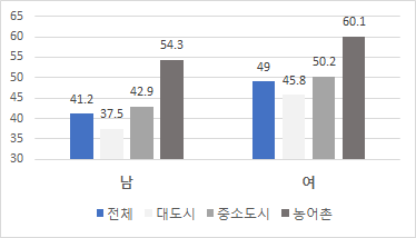 - 여성 농어촌(60.1%) 거주자는 남성 대도시(37.5%) 거주자 대비 빈곤율이 22.6%p 높음