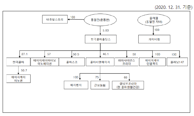 2) 현재 기준 기업집단 한국콜마 소유지분도는 한국콜마홀딩스 사업보고서 참고