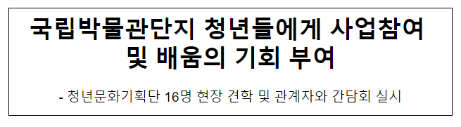 국립박물관단지 청년들에게 사업참여 및 배움의 기회 부여