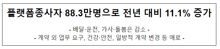 플랫폼종사자 88.3만명으로 전년 대비 11.1% 증가