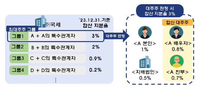 * 최대주주(법인의 주주 중 지분이 가장 큰 주주) 여부는 특수관계인의 지분을 합산하여 판단