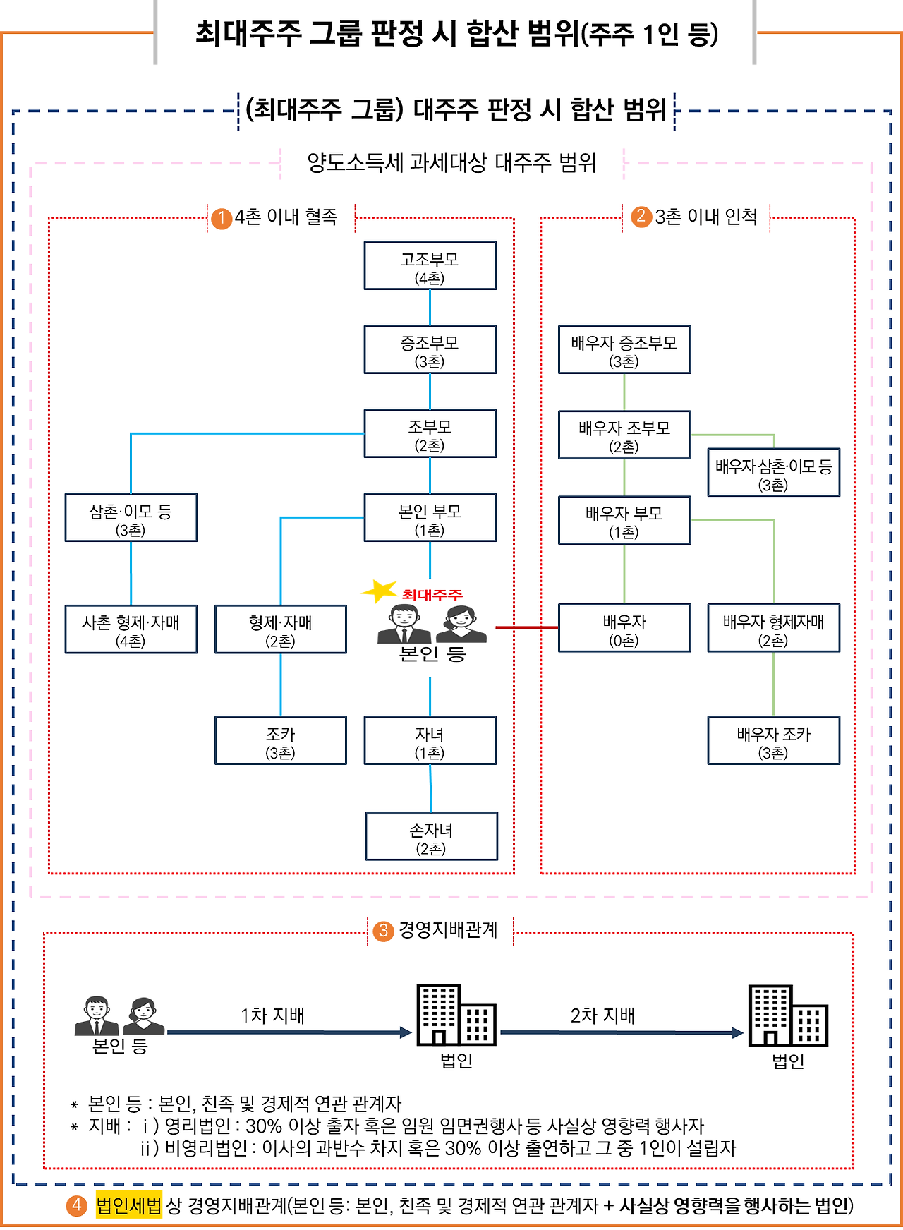 (1단계) 최대주주 그룹 판정 시 합산범위(“주주 1인 등”)=➊+➋+➌+➍