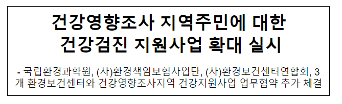 건강영향조사 지역주민에 대한 건강검진 지원사업 확대 실시