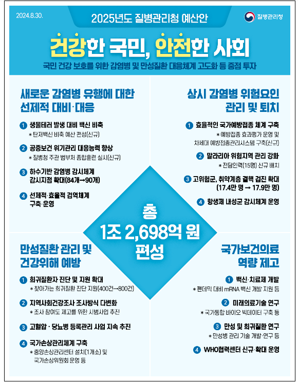 질병관리청, 2025년도 예산안 1조 2,698억원 편성(8.30.금)