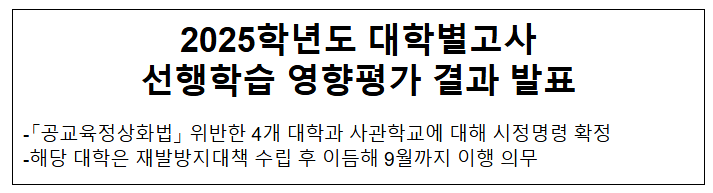 2025학년도 대학별고사 선행학습 영향평가 결과 발표