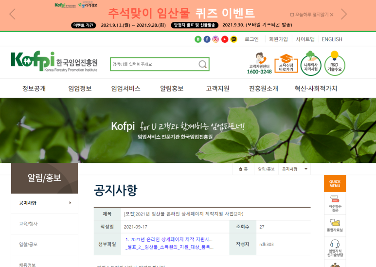 2021년 2차 임산물 온라인 상세페이지 제작 지원사업 모집 공고