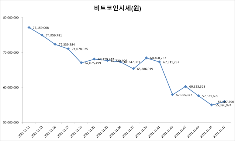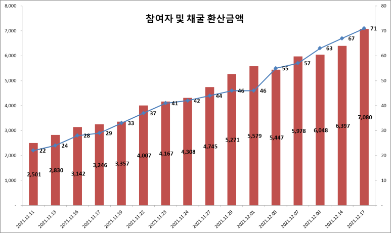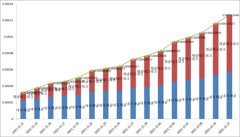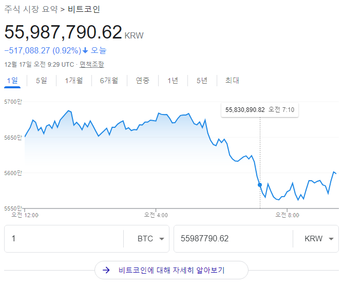 휴대폰과 PC모두 연동하여 비트코인 누적 69일 현재 0.00012646 BTC 채굴하였으며, 현재 2021년 12월 17일 구글 비트코인 시세 1비트코인 : 55,987,790 원이며, 여기서 제가 채굴한 것을 계산하면 됩니다.