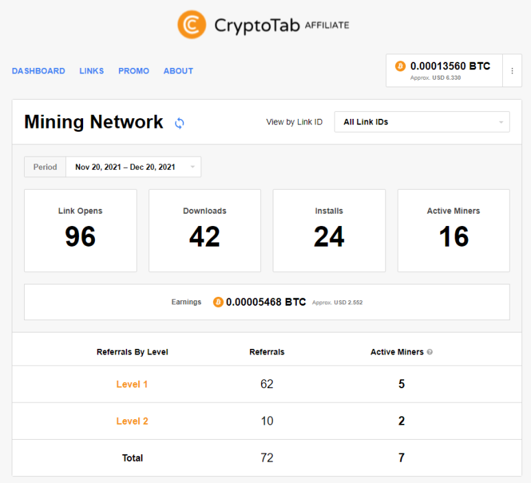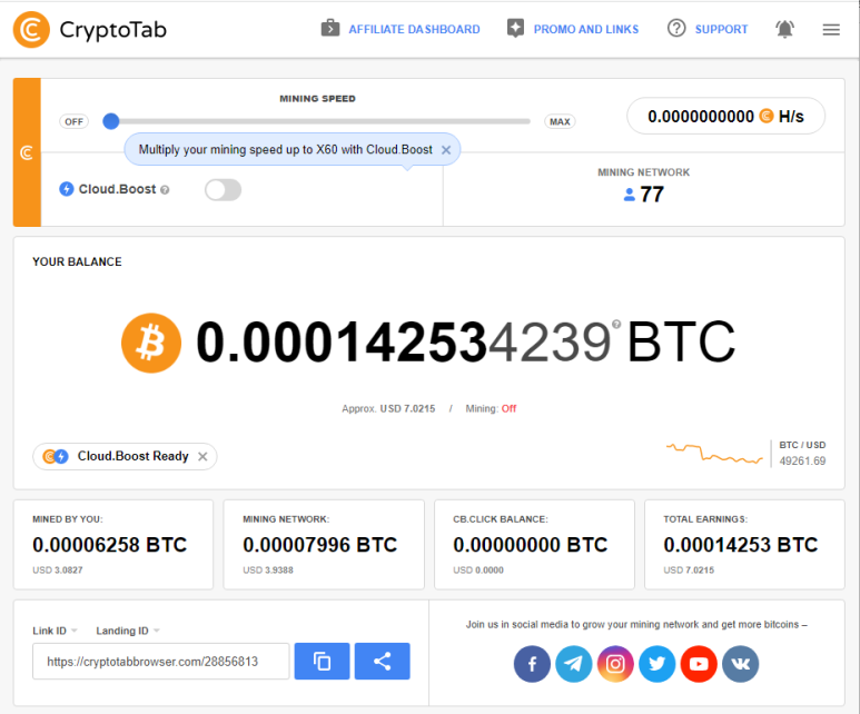 크립토탭(CryptoTab)을 통한 비트코인 채굴 현황