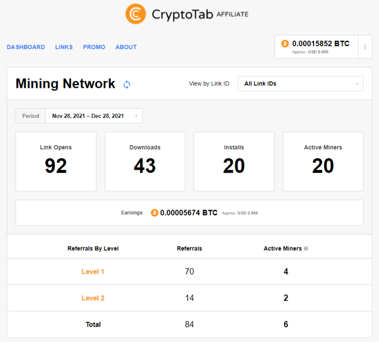 | 크립토탭(CryptoTab) 브라우저를 통한 비트코인 채굴 현황 및 채굴 네트워크 77명 (2021.12.22) (0) | 2021.12.24 |