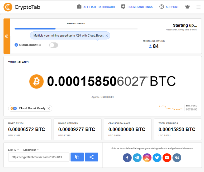 크립토탭(CryptoTab)을 통한 비트코인 채굴 현황
