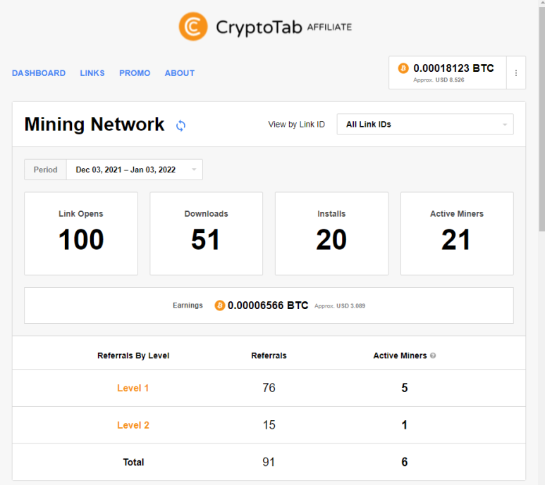 | 크립토탭(CryptoTab) 브라우저를 통한 비트코인 채굴 현황 및 채굴 네트워크 77명 (2021.12.22) (0) | 2021.12.24 |