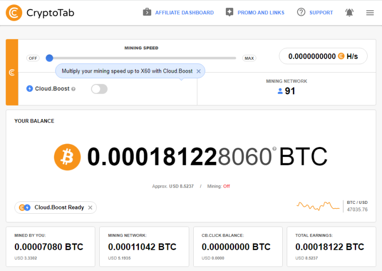 크립토탭(CryptoTab)을 통한 비트코인 채굴 현황