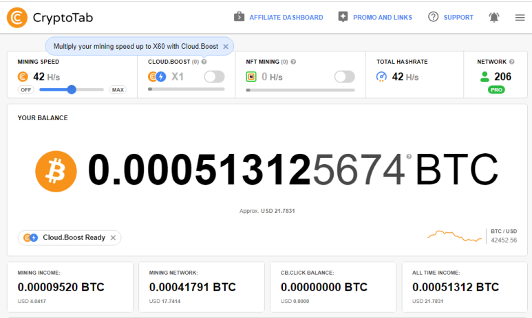 크립토탭(CryptoTab)을 통한 비트코인 채굴 현황