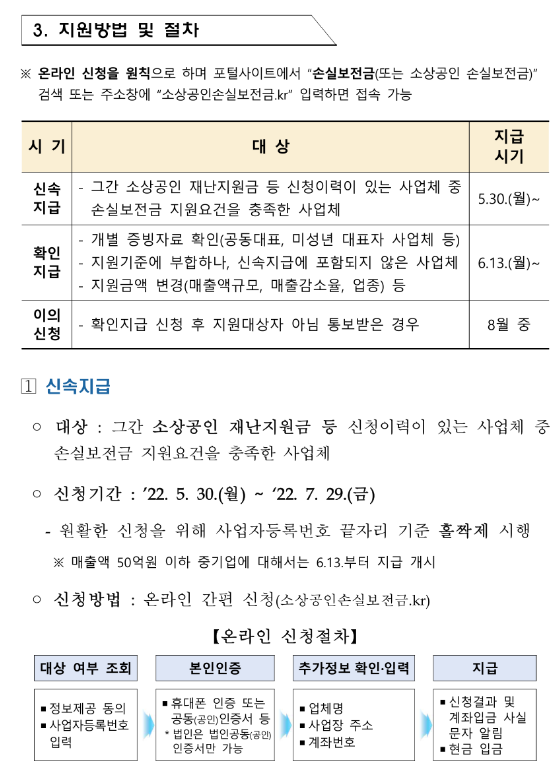 코로나19 방역조치 등으로 발생한 소상공인ㆍ소기업 등의 손실을 보전하고 신속한 피해회복을 도모하고자 '소상공인 손실보전금'을 지원해 드리는 사업입니다.