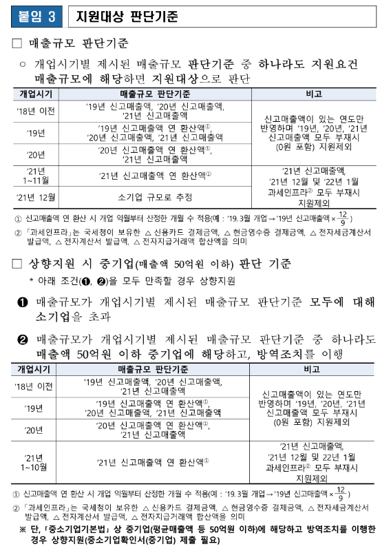 ☞ 사업자등록증 상 개업일이 '21년 12월 15일 이전이며 매출액이 소기업 또는 50억원 이하의 중기업