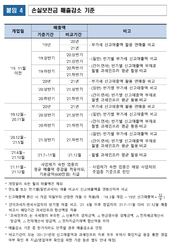 ☞ 매출규모 및 매출감소율에 따라 600만원 ~ 1,000만원 지급