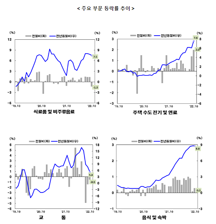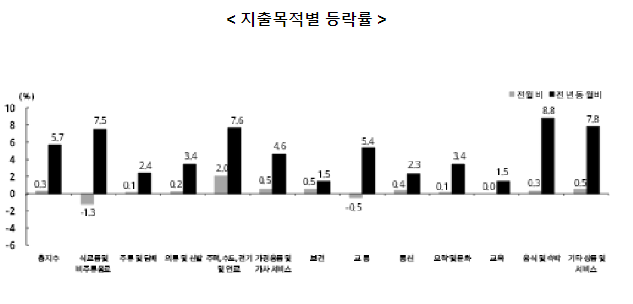 ◦ 전년동월대비 식품은 8.3%, 식품이외는 5.3% 각각 상승