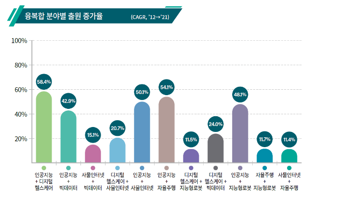 융복합 기술 분야별 출원 증가율(CAGR, ’12→’21)