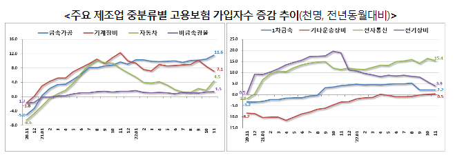 * ‘22.11월 ’화학제품‘ 제조업의 일부사업장이 ’금속가공‘ 제조업으로 산업분류 변경(+2천명)