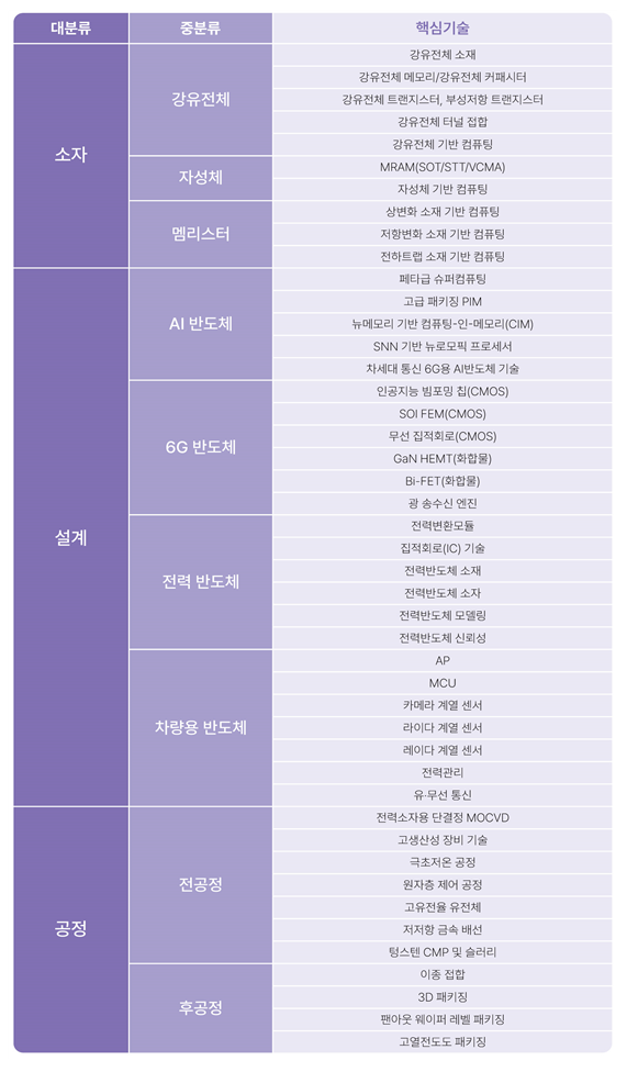 ※ 예) 차세대 공정 및 설계 연계지원, 첨단패키징 기술개발, 반도체 미세기판 원천기술개발, 차세대 반도체 장비 원천기술개발, 전력‧차량용 반도체 기술개발 등 추진