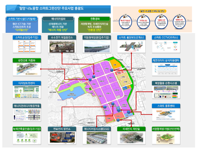 ㅇ 스마트그린산업단지로 조성하기 위해 신‧재생에너지 발전사업자를 유치하고 밀양시 자체 예산으로 친환경 사업을 지원하며 중앙부처의 관련 공모사업 유치 등을 통해 디지털 사업비를 마련할 계획이다.